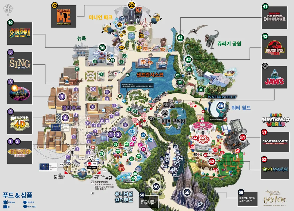 - 특징: 할리우드 영화 테마파크, 슈퍼 닌텐도 월드 등 인기 존